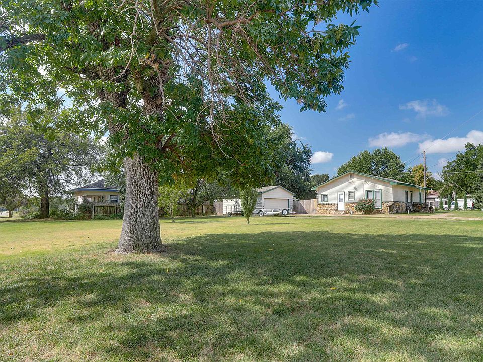 3 Bedroom, 1.5 bathroom home on .33 acres! Home with oversized double garage sits on a corner lot, equaling two city lots, with fruit trees, in an amazing small community and school district! This home is like a jewelry box...you open it up and find all kinds of jewels inside the home! The home has been totally renovated inside! All new flooring throughout, new wood laminate and carpet. New drywall, all new paint in every room, both bathrooms have been updated, a sliding door has been added for easier access to extra large, fenced back yard. The home is beautifully updated! Garden Plain is a hidden gem in itself! Just 11 miles west of Wichita and 4 miles west of Goddard. Easy access, west on Kellogg that turns into HWY 54/HWY 400. An amazing community and place to live!