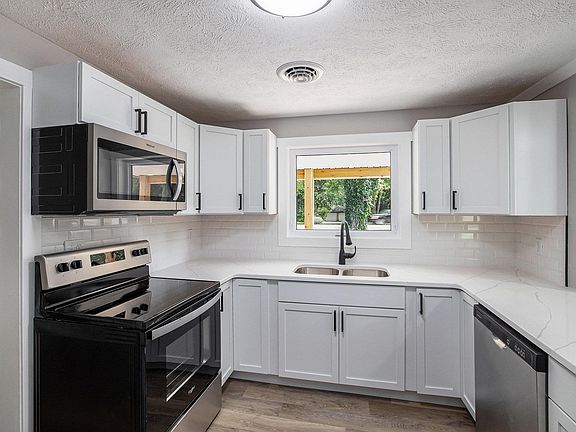 Charming and completely remodeled home on nearly an acre. Whole home updated! New kitchen with solid surface counters and all new appliances, beautiful tile showers in each of the 2 new baths and new flooring throughout. New windows, siding, metal roof, furnace/central air and doors. Updated landscaping. Large backyard and mature trees on property. This home is turn-key ready just 1/2 mile from town! OPEN HOUSE 9/9 FROM 11-1