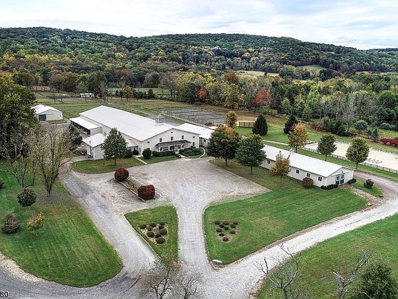 Sweet Grass Farm Thoughtfully designed to accommodate most equine disciplines, this turn-key equestrian facility is offered for the very first time. It is handsomely appointed with attention to detail and is tucked away in a fabulous Long Valley location. Included in this offering is a charming Colonial home and amazing horse amenities, all sited on over 52 acres of scenic property. A gracious front porch entry opens to the well-equipped arena building. It is designed with a stunning viewing room and lounge overlooking the expansive indoor arena. Bright and airy, the arena has Travel Right footing, high kick walls and mirrors. The lounge has a full kitchen, dining area, recreation area and office and leads directly to the main barn. This center aisle barn has 24 box stalls, high ceilings, tack closets, three tack rooms, a full bath and a half bath, grooming stalls, a wash stall, laundry room, a covered loading dock and a feed room. This complex was designed to be efficient and elegant yet workmanlike. Picturesque grounds provide panoramic views of lush pastures and fields. There is an opportunity to exercise the right to build one single-family home. A regulation size dressage court, custom-built round pen, multiple sacrifice turnouts, large fields with waterers and a run-in shed allow for various forms of turnout. The second barn features eight oversized box stalls, some with direct access to fields. This barn has a large open storage area and can also accommodate more stalls should there be a need. Additional amenities include farm equipment storage areas, a heated garage/workshop with large overhead doors for easy access and a manure disposal area. The charming antique Colonial is set apart from the farm complex. It features high ceilings and architectural details including beautiful trim work and moldings. Authentic wide board floors reflect the 1800s period design. The house currently accommodates multiple living situations which can be continued or convert back to a single-family home. Renovations are underway for a beautiful finished lower level with direct access to outside. Long Valley is known for its equestrian activities and is centrally located between Interstates 80 and 78. The top veterinarians, feed stores, tack stores and blacksmiths in the country are located within minutes. In addition to the United States Equestrian Team which is located nearby, there are horse shows, hunter paces, fox hunting and trail riding throughout the region.