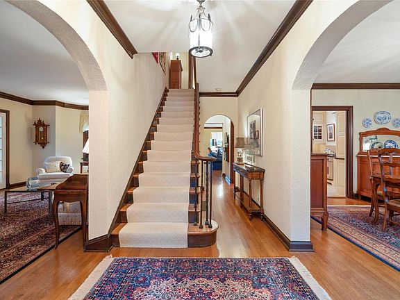 Reminiscent of a country manor, this 3 bed, 2.5 bath Tudor is full of old world charm. Magnificent curb appeal and lush landscaping lead inside where you'll discover the past has been perfectly blended with the present with elaborate renaissance embellishments and architectural details. There are gleaming hardwoods, a perfectly planned kitchen, and over-sized main floor family room. The living room is anchored by a gothic-influenced fireplace and has two sets of French doors leading to the light-filled sunroom. Up the iron-spindled staircase are 3 ample bedrooms, including the luxury master suite with vaulted, beamed ceiling, full bath with jetted tub, and walk-in closet with custom organizers. The outdoor living spaces start at the screened porch off the family room and lead to a large patio, perfect for al fresco dining, or a fanned staircase to the second patio in the lower portion of the fenced, back yard. This home is full of storage options and, did I mention, a 4-car garage?