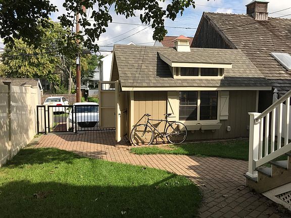 Victorian twin house built in 1876 in a family neighborhood in West Chester Borough near Everhart Park. This house also has central air! The main floor includes a large living room with high end interior shutters, a dining room with original cupboard, a small kitchen, mudroom and half bath. It also has a front porch, nicely landscaped yard with a brick patio, a large storage shed and two parking spaces. The second floor features 3 bedrooms and a full bathroom. The third floor has one large bedroom with an attached full bathroom, and another bedroom (or bonus room) for an office or storage. There is a full basement with a washer and dryer. Tennant pays utilities.