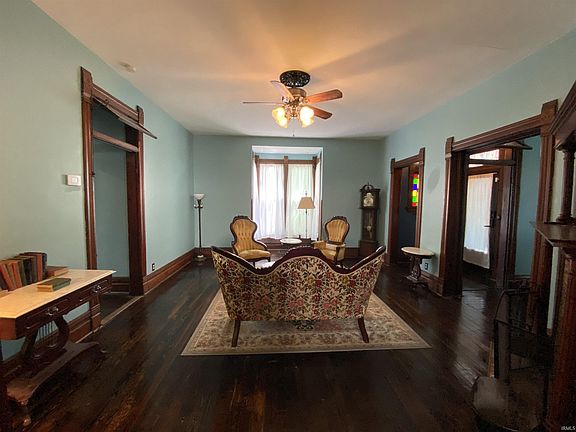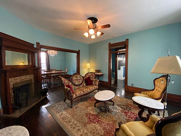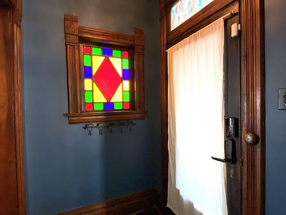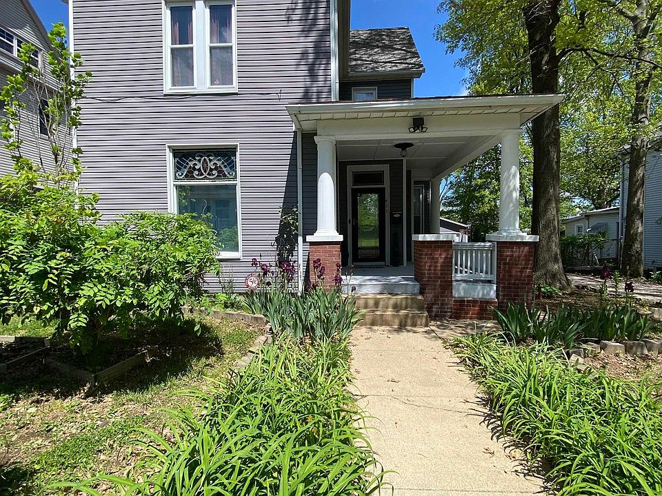 Beautifully landscaped, and welcoming front porch invite you right in, with a foyer boasting stained glass and beautiful transoms. Admire the craftsmanship of the original pocket doors, and wood moldings that lead you into the living room, adorned with original hardwood flooring. Cozy up by the fireplace on chilly evenings, or step out onto the covered porch to enjoy the tranquility of the landscaped front yard and water feature off of the side porch. The gourmet kitchen is a chef's delight, featuring granite countertops, custom cabinets, and modern appliances. The mudroom offers new shelving, walk-in shower, and Bluetooth light. Upstairs, retreat to three spacious bedrooms, an office, and a beautiful full bath. Parking is a breeze with a two-car garage and a gravel driveway. The fenced in backyard is the perfect place to unwind in the pool, and extra space for gardening or a play set. Experience the perfect blend of historic charm and contemporary comfort in this updated home.