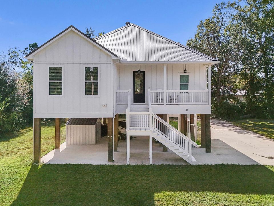 Enjoy outdoor living on two expansive porches, ideal for morning coffee, Gulf breezes, or sunset cocktails. The 150-foot driveway provides plenty of room for boats, RVs, and golf carts, while the generous covered area below offers space for parking, crawfish boils, and gatherings with friends and family.