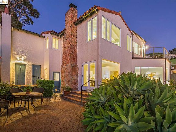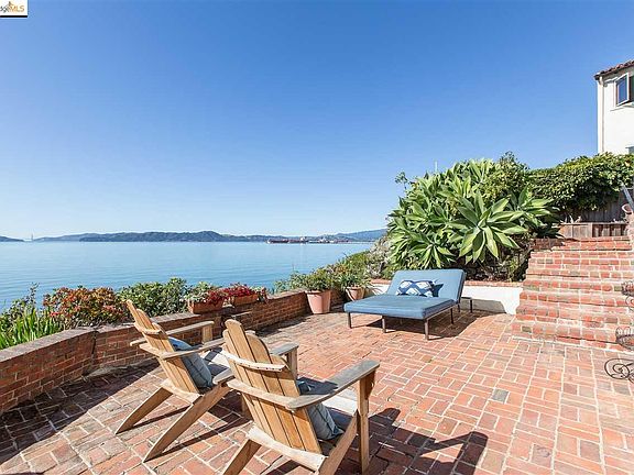Welcome to this premiere beachfront property with captivating views, spanning 3 bridges, the San Francisco skyline and Marin hills. Embraced by multiple terraces, gardens and meandering paths, leading to a lap pool and spa at water's edge, this split-level home is a romantic blend of traditional design elements and desirable modern amenities. There are 2 bedrooms, a den, 2.5 bathrooms, spacious open living and dining rooms, an island kitchen with banquette seating, skylights, and hardwood floors throughout. The upper level master suite includes a marble bathroom with dual sinks, heated floors, separate Jacuzzi tub and a walk-in shower with an infinity drain. Bonus space includes lower level 3rd bathroom, offices, hobby, studio, workout, etc. Spectacular views, charming spaces...truly magical!