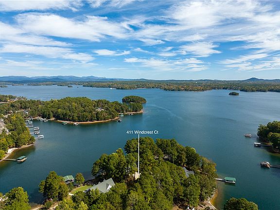 411 Windcrest Court: Desirably located in Wynward Pointe, this home and lot provide beautiful lake views, very gentle slope, 230+/- feet of deep waterfront, full size dock with boat lift, great privacy and the perfect amount of living, storage and outdoor space. The spacious main level features and open floor plan with 2 bedrooms and 2 full baths on either side of the home. All key living areas have sweeping lake views and the 4 season EZ Breeze porch is going to be a favorite spot to relax and take in the long range views while listening to the cascading waterfall in the back yard. The owner's suite is privately located on the right side of the home and provides ample space and views. The large walk in closet is conveniently located adjacent to the laundry and bathroom has double vanities, walk in shower and jetted tub. The kitchen has updated appliances/countertops along with many pull out drawers. Entertaining is easy with the additional buffet and bar area (plumbed for sink, if desired in future) and formal dining room. The rear of the home faces north allowing for great natural light throughout the day and you'll love the sparkle across the water as the sun rises and sets each day. The upstairs provides 2 additional guest bedrooms and 3rd full bath. There's also and office upstairs that could be used as a second den/rec space if an office isn't needed. Notice the separation and privacy from the neighboring docks and the incredible views from the dock looking east! This really is a special spot on Lake Keowee and the mid-lake location makes boating and distance to town ideal.