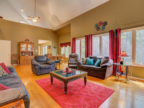 Truly a woodsy setting surrounds this open and bright floor plan in mint condition offering a 1st floor master suite and laundry room making one floor living a possibility in this great two-story home featuring cathedral ceiling in living room w/a gas log fireplace, nice kitchen and full basement to spread out all situated on a .66 acre lot for you to enjoy only minutes to town!