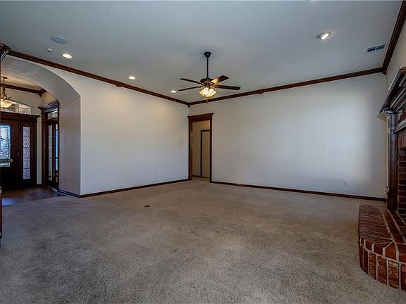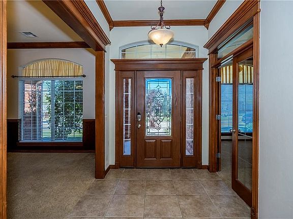 Terrific home in Eastwood features 4 beds, 3 baths, formal dining/study, large living area with built-in's and fireplace, crown molding, large kitchen with casual dining space, walk-in pantry, loads of cabinets. Lovely foyer with arched entry detail. Master has vaulted ceiling, jetted tub, walk-in shower, double vanities, huge closet. Upstairs game/family room with full bath and bonus room/extra office or even 5th bedroom. Three car garage, storm shelter - this one has all the bells & whistles! Eastwood features community pool, tennis courts, walking trails, playground. Convenient to Tinker, Interstate 40. AHS Home Warranty provided by seller.