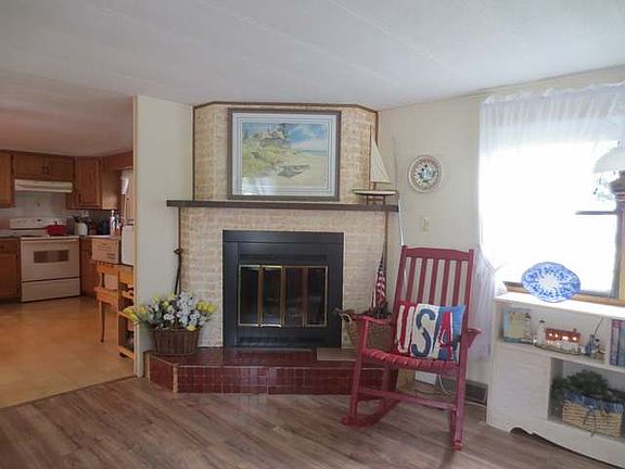 1980 Artcraft mobile home located in Woodland Heights Tr. mobile home park. The floor plan offers the convenience of living all on one level. Large living room with laminate flooring and a brick wood burning fireplace, eat in kitchen with lots of cupboard space, main floor laundry, spacious second bedroom and a master bedroom with full bath. There is a 1 car detached garage with extra storage, blacktop driveway and a patio area.