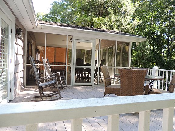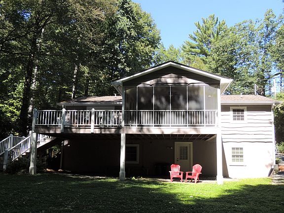 Acorn Cottage is a hidden gem located in the Mirror Lake area and close to Main Street Highlands. A delightful cottage, all on one easy level and tastefully furnished and decorated with touches of fun, mountain elegance. The spacious, fully equipped kitchen is next to the dining area. The living area has a native stone fireplace (gas log), vaulted ceiling, Cable ready. There are three bedrooms, and the house was designed with a split floor plan for privacy. Behind the kitchen area is a full bath next to a bedroom. The other wing has two bedrooms, with a full bath in between. There's a laundry closet between bedroom 2/3 and the dining area. The cottage is just the right size for a couple or a family of six. The outdoor living areas include a screened porch and an open deck, both of which have room for dining and relaxing. The back yard is easily accessed and has a great level, grassy area for lawn games, families or pets. Add a fire pit, and get your S' mores and campfire stories ready! The full basement is a blank canvas waiting on your ideas for an office, family room, fitness room, another bedroom, etc. The Mirror Lake area is great for walkers. You can walk back roads, hiking trails, and country lanes into town if you'd like, where you'll find a year-round covered/ heated pool, skateboard ramp, The Bascom art gallery, Kelsey & Hutchison Park with splash pad, picnic tables, library, churches, Performing Arts Center, and of course the shopping and dining experience of Highlands- everything from T-shirt shops to furs, and dining from burger places to 4-star restaurants. Enjoy Highlands more when you start with this cottage, whether it's your home or home away from home. Amenities include: 3BR/ 2 baths Screened Porch WiFi and Cable TV ready Gas log fireplace easy access with only two steps to enter Laundry