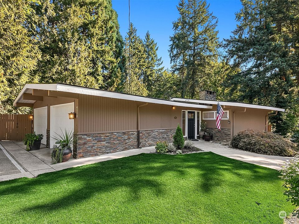 Mid-century architecture meets modern living in this spacious daylight rambler, tucked on Mercer Island’s desirable North End. Its great room layout is ideal for any lifestyle—whether you’re hosting friends in the gracious living & dining areas, exploring culinary delights in the granite/stainless kitchen with island seating & planning desk, or simply enjoying quiet evenings alongside the cozy 2-sided fireplace. Warm hardwoods anchor the soaring ceilings & dramatic walls of windows. Step out for al fresco fun on the deck with beautiful back yard beyond or steal away to your main-floor owner’s suite. One more bedroom up + 3 down with a flex room, rec room, bonus room, & wet bar (potential ADU?) provide ultimate flexibility.