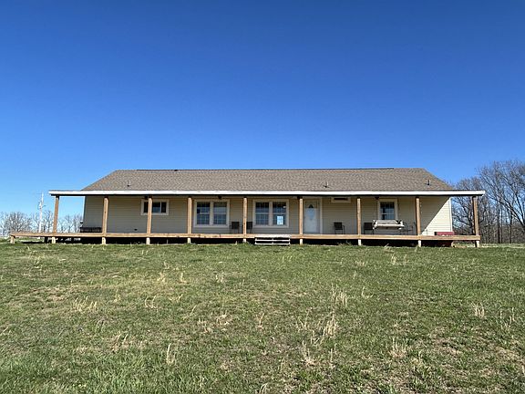 This farm includes a spacious 4 bedroom, 3 bath ranch style home atop the highest point on the property! Enjoy the private setting and gorgeous views from the large covered front porch. The 30 +/- acres offer a 40x60 barn, chicken coop, 20x30 concrete pad, 3 stocked ponds, 3 springs (1 year around, 2 wet weather), and has perimeter and crossed-fenced with some continuous pipe, and 4 strand barbed wire. This place is ready to farm!