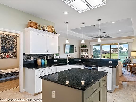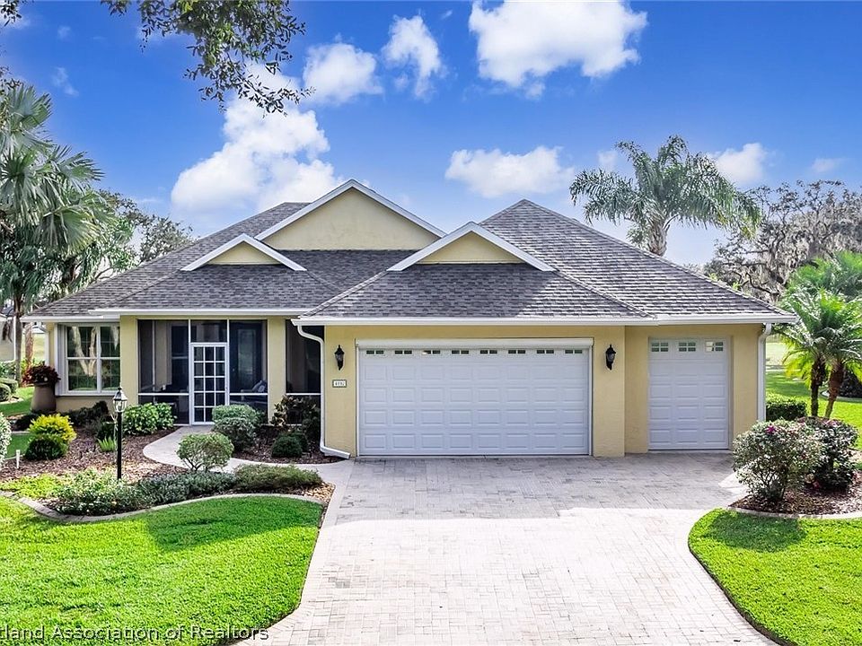 Custom-built home located on the golf course (10th fairway) in one of the most sought after neighborhoods-Highlands Ridge. Freshly painted inside & out, concrete decorative curbing, paver driveway, rocks and mulch recently replaced, plus a rain barrel for additional watering needs. Enter through the screened front entry to a an open split floor plan. To the right of the foyer you will immediately notice an amazing updated kitchen, granite counter tops, top-notch slate Whirlpool appliances, wrap around bar, refaced cabinets, all pull out drawers and a large pantry. The master suite overlooks the golf course, large master bath with his & her vanities, make-up counter in between, tiled shower, block glass for natural lighting, and a walk-in closet. On the opposite side of the home are two nice size bedrooms and a bath that is perfect for family or guests. Oversized 2 car garage plus an additional golf cart bay and a separate 6x9 storage area. Inside laundry/utility room accessible from the garage, a half bath, Kenmore Elite washer & dryer, wash tub and a large closet. This home offers so many additional features that include: Roof 2022, AC 2017, all new gutters, storm shutters, skeeter beater, whole house surge protector, generator hook-up, solar film on windows, security system and much more. It's apparent this home has been meticulously maintained. Imagine the beautiful sunrise over #10 and the glorious sunsets over Carter Creek. And the tranquility we enjoy along with the creatures we see in the Preserve! Come and visit one of the best active 55+ communities in Highlands County that offers two championship golf courses, restaurants, pools, tennis courts, pickleball, shuffleboard, horseshoes, fishing and boat ramp.