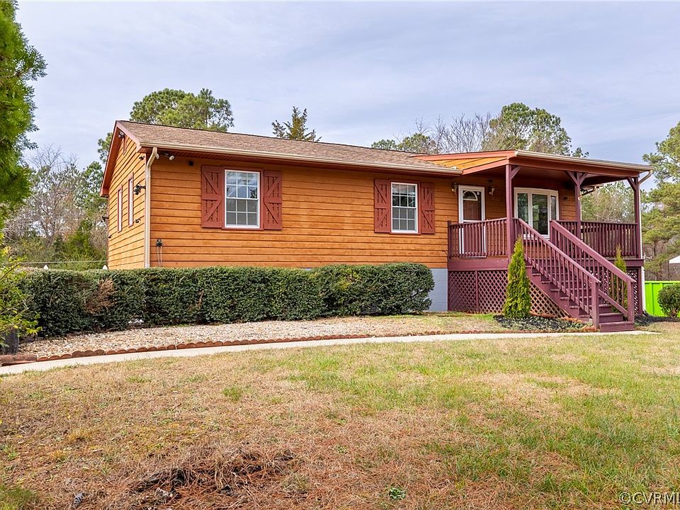 Move-In Ready Rancher located less than half a mile from Lake Chesdin! This beautiful home features 3 bedrooms, 2.5 baths, and over 2,200 square feet of renovated living space! The first floor offers a spacious living room with refinished hardwood floors, large eat-in kitchen with updated stainless steel appliances and granite countertops, and 3 well sized bedrooms with an updated full bath and half bath. Off of the first floor you will find the newly painted front porch and rear deck that overlooks the fenced in back yard. Spiral stair case off of the kitchen leads down to the Finished Full Basement that includes an another Full Bath! Additional updates include fresh paint throughout, new trim throughout first floor and basement, new interior doors, and new vanity's in the bathrooms. All appliances convey, including washer and dryer! Move-in condition, see it today!!!