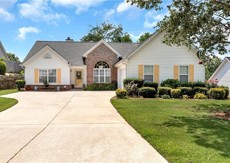 Settle into the best of North Hall living in this beautifully maintained, move-in ready ranch with split floor plan one minute from the Kroger shopping center and minutes to Lake Lanier. Beautiful foyer with natural light as you enter the living room with vaulted ceilings, vinyl plank flooring and a gas fireplace for those cozy fall and winter evenings. Separate dining room is open to living room area with large window ushering in light and sparkling chandelier. Charming eat-in kitchen with breakfast bar, pantry and excellent amount fo counter and cabinet space. Upgraded lighting throughout home. Master bath features separate garden tub, shower and toilet room. Private outdoor patio with fenced yard allowing for room for a play area or graden. Guest bath has been renovated with new vanity, sink and flooring. A 10x16 utililty shed with 10" ceiling that is currently used for a workshop but has unlimited potential. Newer HVAC with ionizer air purifier, newer roof and new Allen block retainer wall with new irrigation system installed in 2023. Make sure to not miss this one!