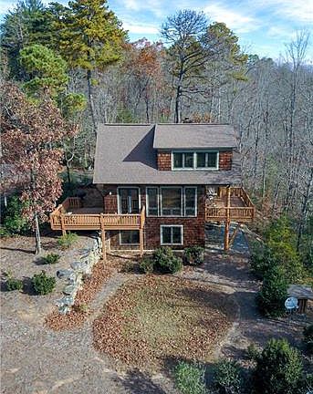 Income producing property with a long rental history. Contact us for more information. An ideal location for a cozy long weekend. This two bedroom and two bath cabin, with a King, 2 Full beds and 2 Trundle beds, sleeps 8 and has two decks overlooking Lake James and the Blue Ridge Mountains. Enjoy the area as you take a walk along our trails to Camp Lake James, where you can relax poolside or take a kayak trip. Comes with a deeded boatslip, and unheated out building that is 173 square feet.