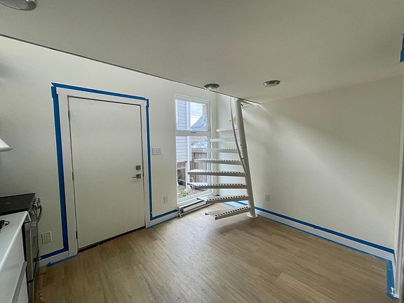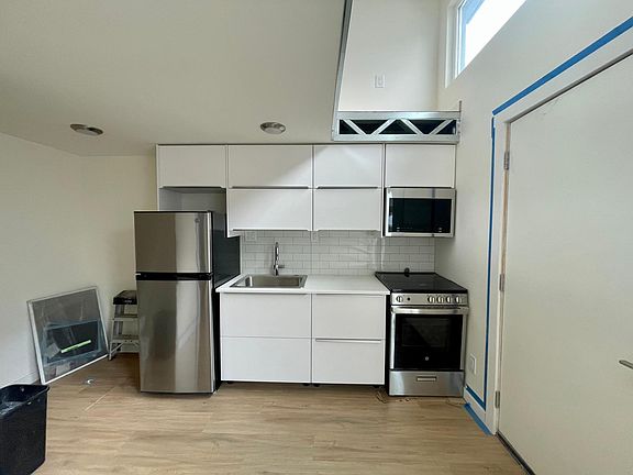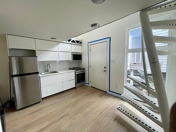 This thoughtfully designed tiny home is located in the secured backyard of a duplex, offering privacy and convenience. The home includes a full kitchen with stove, microwave, and refrigerator. A sturdy spiral staircase leads to the loft, which accommodates a queen-size mattress with additional space (loft clearance is 4 ft floor-to-ceiling). The property is situated in the Fruitvale neighborhood, just two blocks from BART, adjacent to Smart & Final, and within walking distance of restaurants, food trucks, and local retail an excellent location for commuters and those who enjoy an active, walkable lifestyle. Owner pays garbage. Tenant pays electricity,water and cable. Requires a 1 year lease than Mo to Mo. Parking in the Street Pet Deposit of $300 returned once the lease is terminated and there is no damage from the pet. the studio was built 2022