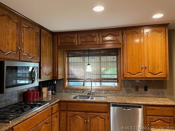 PRICE REDUCED! Great home in Holliday Hills, across from the desirable Carnegie Elementary School and near LaFortune Park. This well-maintained 3 bedroom 2 bath home has a lovely updated kitchen with granite countertops, stainless steel appliances, lots of cupboard space, a pantry, and a space for homework and a snack. Indoor laundry just off the kitchen. Formal dining and living room. The den has beautiful hardwood floors, a fireplace, and Pella sliding door to the covered patio, and a spacious treed backyard on a corner lot. Enjoy a morning coffee on the covered front porch.