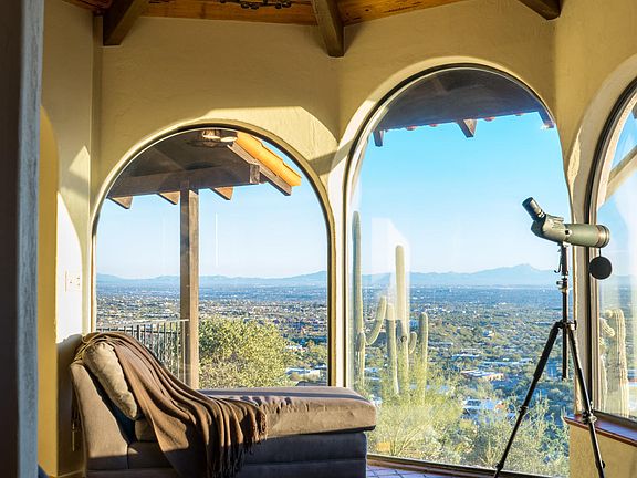 Privately gated estate at the top of Tucson! From your ridgetop, enjoy unobstructed views of the city below, dramatic storms and sunsets, and every mountain range surrounding Tucson as well as the mountains beyond! Enjoy the quiet at the end of the road with no neighbors to the west, and views of Finger Rock and the old silver mines of Pontatoc Ridge from the living room, front entry and office. Every room is designed to capture views. Custom finishes throughout, including pecky cedar ceilings, Travertine, wood and cork flooring, raw edge granite counters and decorative niches. Upscale shopping and dining nearby, with the University and downtown straight ''down the hill''. A property to enjoy, this masonry constructed home has had only two owners in forty years.