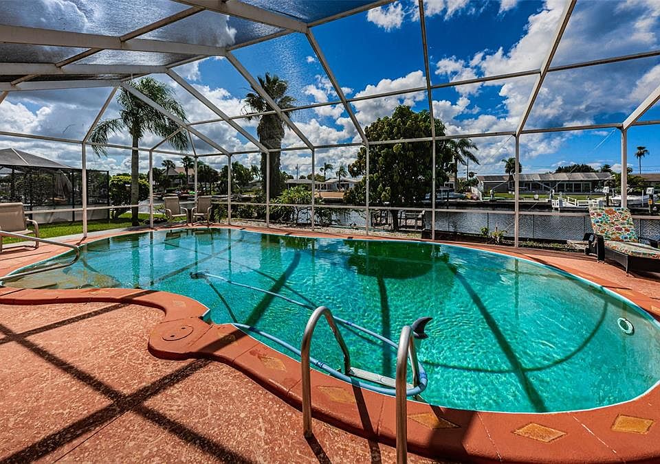 - Pool features: Auto Cleaner, Deck, Gunite, In Ground, Lighting, Outside Bath Access, Screen Enclosure, Tile