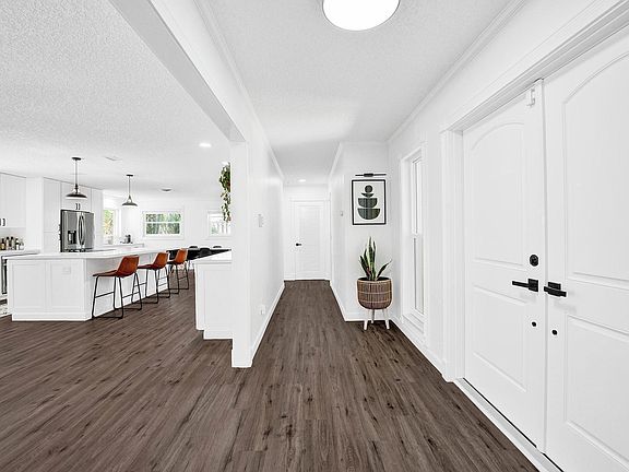 This home is situated on an oversized lot full of mature landscaping and overlooks a body of water. Upon pulling onto the custom extended driveway you will step out and see the matching walkway that will lead you to the entrance of the home. When you enter the front door, you will immediately feel the pride of home ownership and will know that the current owners put their hearts into making this house a home.First, you will see the amazing open layout, and then your eyes will lock on to the kitchen, which is the first place you will visit. The kitchen has a custom-built layout, a huge beautiful island with a stovetop, smart appliances, an extended coffee bar into the dining area, and a custom bar with a built-in wine fridge and custom shelving. All cabinetry was built custom with common sense storage and pull-outs all with the soft closing feature. The Kitchen window overlooking the pool operates just like the 3-panel stacking slider where they open completely and tuck behind the wall making the home look even more open. All windows and doors in this home are impact rated! This layout of the living room, kitchen, and access to the patio and pool make this house perfect for entertaining! Off to the master bedroom, you will notice the perfect-sized room and the natural light coming in from the window overlooking the pool. Head into the custom-built closet providing optimal space, which you don't find in homes built during this time. Through the closet to the master bathroom where no expense was spared for renovation, there is a custom mirror with an led makeup light, antifog feature, custom vanity and countertop, dual sinks, and a beautiful shower with custom tile work, an accent wall that includes a built-in shelf and a rainlike shower head with a separate wand feature! 3 secondary bedrooms remain in the home which are good size and all have closets. A full guest bathroom that provides a tub/shower combo, large vanity, and a granite countertop. Out to the screened patio, you will feel a sense of relaxation as you overlook the beautiful pool, backyard and canal. This home has a lot to offer and if you've read this far you are definitely interested and should call us to set up a private showing. We look forward to hearing from you!