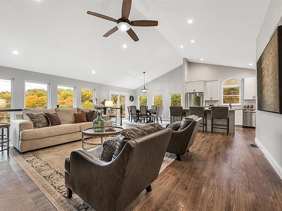 - Kitchen Island, Custom Cabinetry, Eat-in Kitchen, Solid Surface Countertop(s), Kitchen/Dining Room Combo, Double Vanity, Shower, Open Floorplan, Vaulted Ceiling(s)