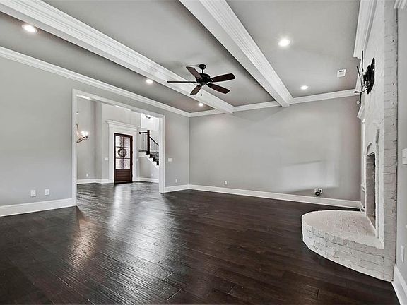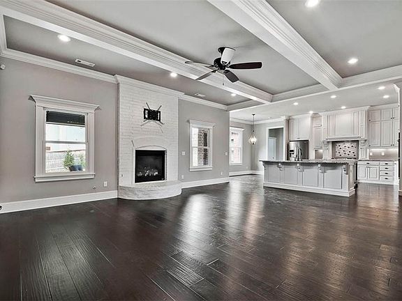 Beautiful home in gated community. Open floor plan, perfect for entertaining. Large open kitchen w/ an abundance of cabinets. Wood floors throughout. Outdoor living area w/ gas log fireplace. Privacy fenced yard. Storm shelter in garage. Truly a must see!