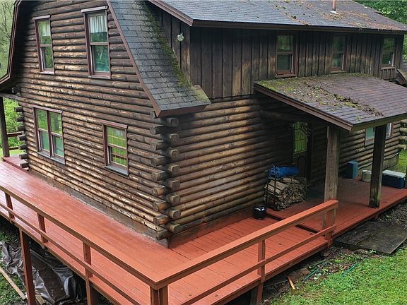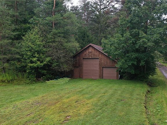 Secluded Paradise! Get away from it all at this well-built log home. 25+ acres of woods and trails for hunting, snowmobiling, cross country skiing, hiking. Large landscaped yard perfect for sledding and other outdoor fun. Cozy up in front of the wonderful stone fireplace in the great room. Play a game of cards in the dining room while you’re cooking a crockpot of chili in the kitchen. Lower level family room has a woodburning fireplace. Two other rooms in lower level, which could be finished off with 2 more bedrooms by adding windows. One car garage with entry to lower level. Huge outbuilding: 36' x 32' two-car garage with room to store your RV. Everything is ready for your design touches. Just minutes to Ellicottville or Olean. The perfect get-away spot. A complementary one year warranty comes with this home!