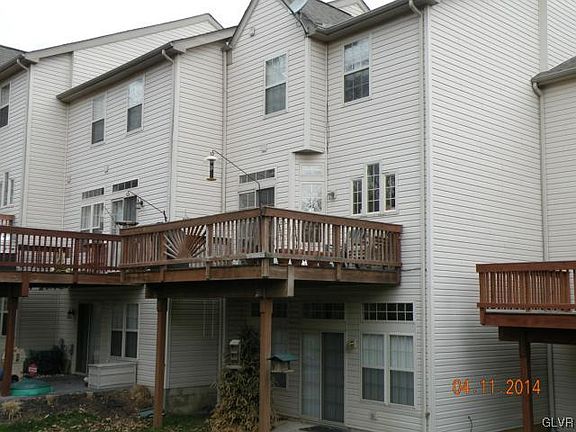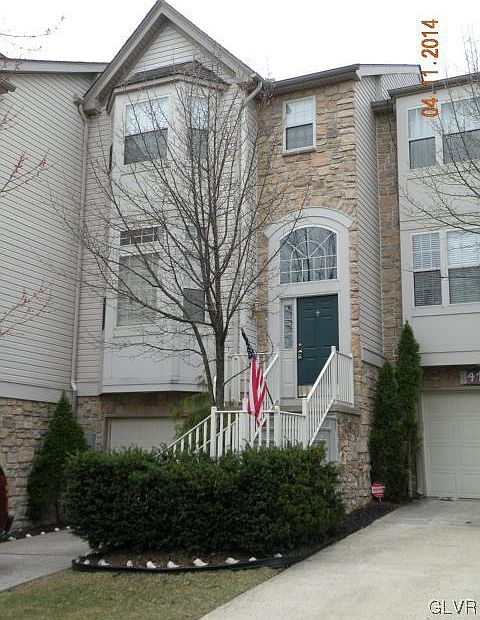 Waterford Court, Southern Lehigh townhouse with open floor plan! Living Room open to Dining Room separated only by gas fireplace and vertical columns, Eat-in Kitchen including breakfast bar walks out to large deck ! Master Bedroom Suite with cathedral ceilings, private master bath and walk in closet, 3 Bedrooms total, 2.5 Baths, Walk out finished Family Room in lower level with high 9ft ceilings! 1 car garage with automatic opener and storage rooms! Efficient Gas heat and Central Air, Situated on one of the nicest locations in the community with tree lined back yard and no other units behind. Easily accessible to Routes 309/378/78 & convenient to shopping/restaurants at Promenade shops at Saucon Valley. Less than a mile from the Library and Saucon Rail trail with walking and bicycling paths.
