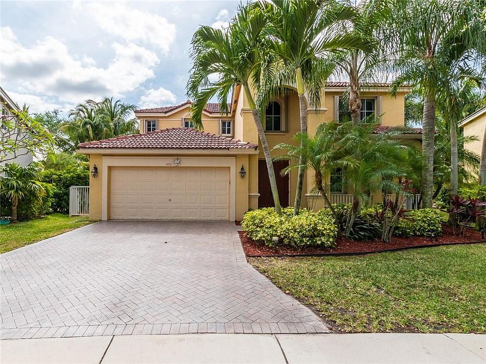 This 4 BR + loft (can convert to 5th BR) & 3 full BA pool home*beautifully appointed*neutral colors*tile & wood lam flrs*vol ceilings in entry*formal liv*din*fam rm*1 BR & laundry rm w/W/D on 1st flr. Remodeled kit*42 *wood cabinets*quartz counters*SS appls*counter bar*pantry. Living areas open to pool & backyard oasis. Owner s suite on the 2nd flr* large walk-in closets w/built-in cabinetry*updated BA w/soaking tub*frameless glass shower*dual raised sinks*porcelain tile. All BRs w/custom built-in closets. Boasts screened & heated salt-water pool*covered patio area*tropical landscaping*fenced backyard. Newer dual A/C units*accordion hurricane shutters. 24-hr man-gated community featuring clubhouse*kid s playground*comm pool*kids splash pad*BBQ area*tiki huts* sports fields & more.
