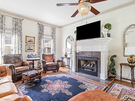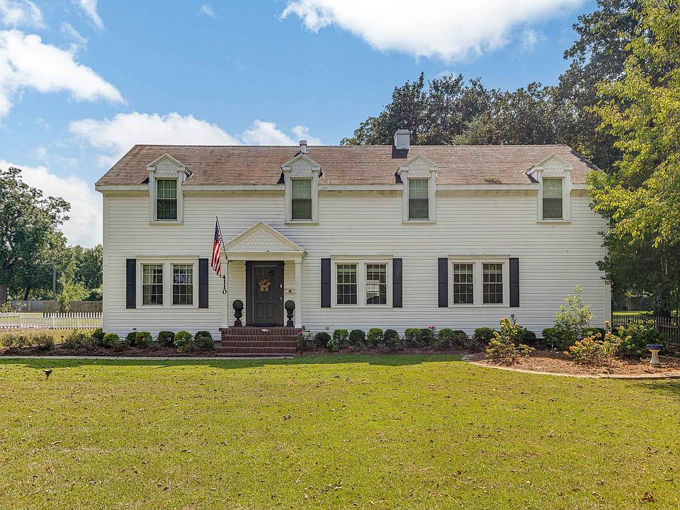 Once the KA fraternity house during the NLU era of the 1960s, this 1946 Colonial-style residence blends rich history with timeless elegance. Set across from the scenic Bayou and offering ownership right to the water’s edge, the property is framed by a charming picket-fenced front yard and meticulous landscaping. An additional lot with a three-door shop is also available for purchase, providing an opportunity to expand your estate. Inside, gleaming hardwood floors, crown molding, and abundant natural light create a welcoming atmosphere. The grand living room showcases a gas-log fireplace and a striking bay window with seating, while the formal dining room flows seamlessly into a cheerful breakfast area with a built-in buffet. The kitchen boasts granite countertops, a stylish tile backsplash, and generous cabinetry, leading to a spacious laundry room with extra storage and access to the detached two-car carport. The main-level primary suite offers two closets and a spa-inspired bath with subway-tile flooring, a tiled shower, and granite vanity. Just off the suite, a bright office/den provides exterior access. Upstairs, you’ll find a grand bedroom retreat with an en-suite bath, two walk-in closets, and a bay window seat, along with three additional bedrooms, each with walk-in closets and cozy bay seating. Outdoors, enjoy a private gunite in-ground pool with a poolside bar, a storage shed plus two additional storage buildings, and sweeping views of the Bayou. Located in the coveted Neville School District, this home captures the best of historic character and modern comfort.