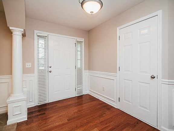Hardwood entry opens into generous Dining Room/Formal Living Room. Spacious kitchen w/ wood cabinets, all appliances, hardwood floor, & Breakfast bar. Archway opens to Large light filled Living Room/Family Room. 2-car garage w/ auto opener & bath finish the lower level. Upstairs: Master suite w/ 2 closets & bath w/ garden tub & tile floor. 3 additional bedrooms & hall bath, and laundry room finish the upper level. Patio on rear.