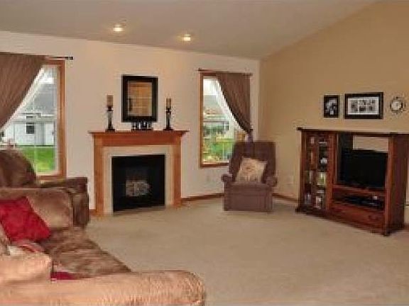 Beautifully maintained home in neutral colors. Great location w/ low town taxes.Inviting open floor plan w/ vaulted ceilings in kitchen and living room.Kitchen offers 2 pantries and a large island. Plenty of cabinets and eat-in space overlooking landscaped yard. Master includes large bath and walk-in closet. Garage,closets,and basement feature built-in shelves. Great nbrhd and close to walking trails.