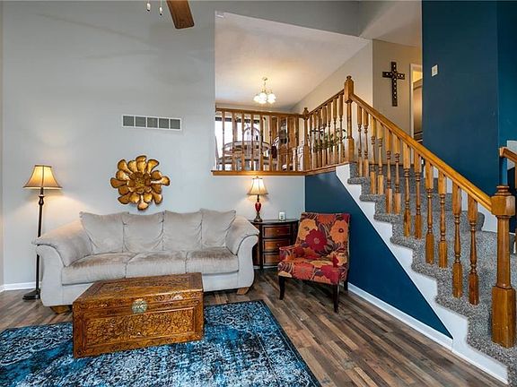 Minutes to NKC, Downtown & KCI. Ideal Location! Vaulted ceiling open to the kitchen makes entertaining guests easy. Popular grey cabinets, hardwood floors & tile backsplash in your kitchen. Large hall bath with double vanity. Spacious bedrooms & master with 2 closets. Family room with 1/2 bath and beautiful french doors. The Backyard will become your favorite spot, large deck, patio & fenced in yard. Sub-basement great for storage/workout room. Vinyl siding & New garage doors for easy maintenance. Fresh & Clean.