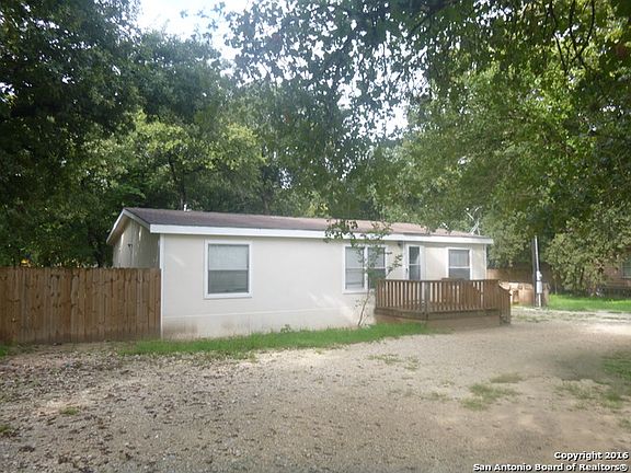 If You Love Fishing and The Beautiful Country Side, Come & See This Beautiful Renovated Manufactured Home. Nice Open Floor Plan With High Ceilings, Spacious Kitchen/Dining Combo With Huge Living Room and Tiled Floors. Master Bedroom With Walk-In Closet , Inside Laundry Room. Huge Back Yard With Private Fencing For Family Gatherings, Wood Decks Front & Rear, Property Sits on Almost 1/2 an Acre With Mature Oak Trees, Easy Access To I-37,Loop 1604, Brauning & Calaveras Lakes.