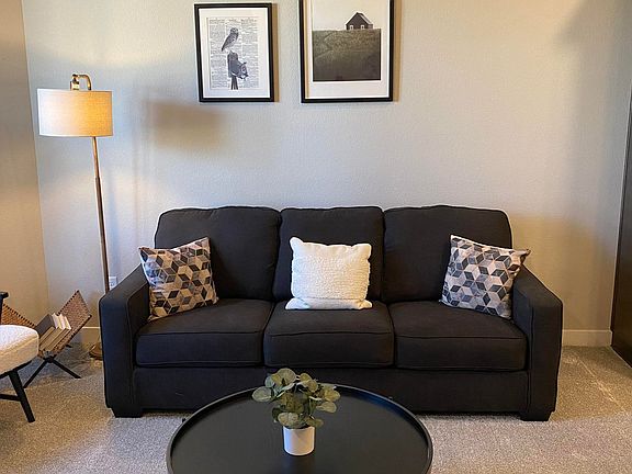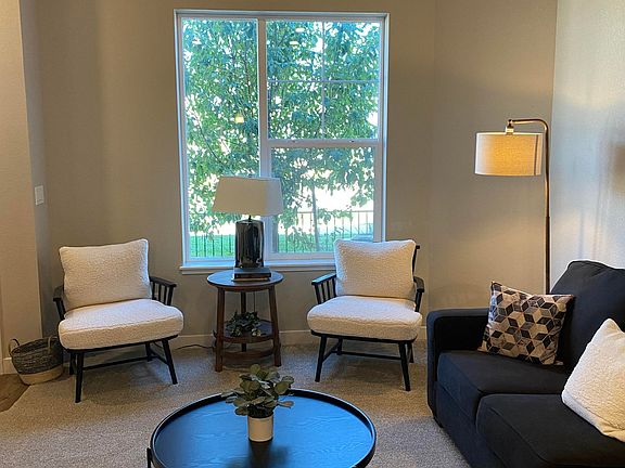 NEVER LIVED IN MODEL HOME! Come see the beautiful, upgraded finishes throughout. Open floor plan, filled w/natural light & vaulted/tall ceilings add to the spacious layout! Kitchen features stainless appliances & each bedroom has its own walk-in closet & en suit bath! Fenced in patio and home comes with fridge, washer & dryer! HOA includes access to Houts Reservior, high speed internet & much more! Centrally located & walking distance to Boyd Lake, trails, pools, shopping, dining, parks, entertainment & much more!