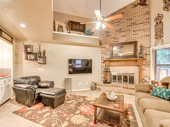 This Home is Gorgeous! Built w/Comfort & Quality in Every Room. Featuring a Vastly Open & Fully Functional Floor Plan w/3 Bedrooms & Two Full Baths. An Inviting Living Room w/High Ceilings, a Beautiful Fireplace, a Ceiling Fan, & Access to Upstairs. The Polished Kitchen Has Plenty of Counter Space, Roomy Cabinets, & the Fridge & Microwave Included. A Spacious Master Bedroom w/a Balcony, Ceiling Fan & a Full Bath w/a Jetted Tub/Shower & His & Hers Sinks. One Carpeted, Spare Bedroom w/a Ceiling Fan, Beautiful Wooden Bay Window, & Large Closet. The Other Spare Bedroom Offers Hardwood Floors, a Ceiling Fan, & a Large Closet. His & Hers Vanities for the Second Bathroom, w/Plenty of Counter Space & Cabinets for Storage, Along w/a Tub & Shower. Enclosed Utility Room Comes w/Washer & Dryer. A Beautiful Escape in the Backyard Onto 900sq.ft of Decking w/200sq.ft Covered, a Fire Pit w/Seating, a 12X16 Building w/Heat & Air & a Loft. This Home Has Everything & More w/a New 18 Month Old Roof!