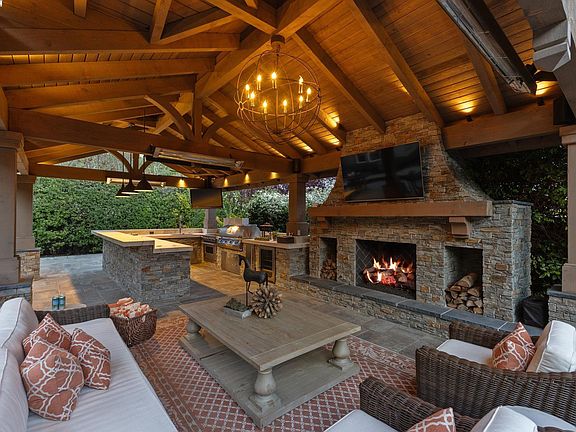 Experience luxurious living in this stunning home nestled within the highly sought-after Stone Valley Oaks enclave. Situated on nearly an acre of meticulously landscaped grounds, privacy reigns supreme. The main house features 5 bedroom en-suites, including one downstairs, office with built-ins, & a gorgeous chef's kitchen equipped w/top-of-the-line appliances, oversized center island, 6 burner Wolf cooktop, Sub Zero fridge, newer designer light fixtures, & quartz countertops. Adjacent great room with fireplace, seamlessly flowing into the entertainer's dream backyard. Soaring ceilings throughout, custom moldings, and natural light. All bedrooms are en-suite. A detached 1-bed, 1-bath casita with a private courtyard is perfect for out of town guests. Relish in the spectacular backyard, from the pool and spa to the bocce court, & wisteria-covered outdoor dining area, every detail exudes sophistication and quality. Enjoy evenings by the fire pit or under the covered loggia with a full kitchen, living room area w/fireplace. Close to hiking, biking, and top-rated schools, this home offers the epitome of luxurious living and complete privacy. Welcome to your oasis in Stone Valley Oaks.