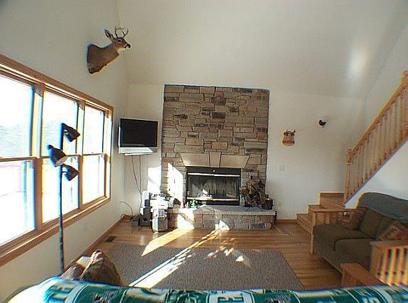 2 BEDROOM HOME ON 37.7 ACRES! This 2 bedroom home, built in 2006, is perched on a hill overlooking 37.7 wooded acres. Great view, nice sledding hill, lots of wildlife, fireplace, game/family room with knotty pine, wet bar, deck & more!! Outstanding location close to town,snowmobile & ORV trails!