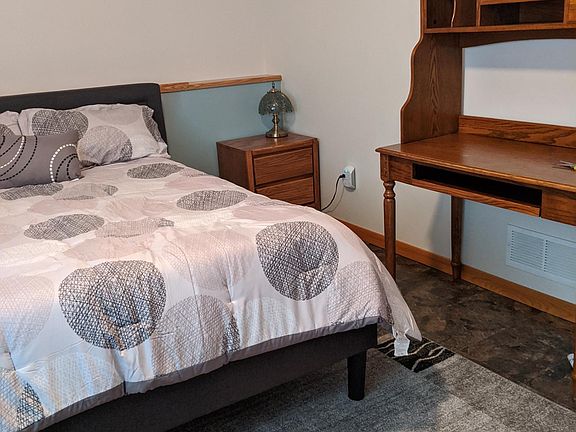 Room has new bed and bedding and room rug. Linen provided. A nice clean comfy room in lower level of house. Also newly updated bathroom. Shared entrance, share kitchen. I do have cats and dogs of my own.