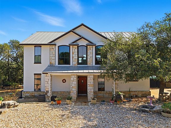 Welcome to 4110 Tyx – a Hill Country Micro-Farm Retreat with Breathtaking Canyon Views, Modern Comforts, and No Restrictions! SPECIAL FINANCING AVAILABLE. Nestled among celebrity neighbors in the heart of the Texas Hill Country, this charming 4-bedroom, 3-bath cottage-style home offers a unique reverse floor plan features the main living, dining, and kitchen areas plus 3 bedrooms upstairs, with an additional bed, bath, and an living room downstairs—ideal for guest. Designed to capture the beauty of its surroundings, the primary suite, kitchen, and living room showcase panoramic canyon views. Step onto the expansive deck, perfect for morning coffee, evening sunsets, or weekend entertaining. For those seeking a true micro-farm lifestyle, this property delivers. The partially fenced backyard currently has free-range chickens and offers space for vegetable gardens and fruit trees. The land is filled with native flowering plants that attract butterflies and pollinators, and it can also support active beehives for honey production. Over 125 yards of enriched soil have been added to create a thriving micro-farm with a ton of fruits and vegatables. Perched on a private cliff overlooking Lick Creek, which feeds into the Pedernales River, this property provides direct access for kayaking, fishing, and wildlife watching. Natural cliffs and cave formations add to its rare Hill Country charm. Recent updates include: • Water filtration system (2025) • Septic pump & wiring (2025) • Exterior paint (2024) • Balcony flooring, railings & beams (2024) • Hot water heater (2023) • AC compressor (2020) & blower (2025) • Septic sump pump (2021) • Interior AC unit (2018) • Well head (2017) Blending modern comfort, natural beauty, and sustainable living, this is a Hill Country micro-farm retreat where you can enjoy privacy, scenic views, and the freedom to live off the land—all within easy reach of local restaurants, shops, and city conveniences.