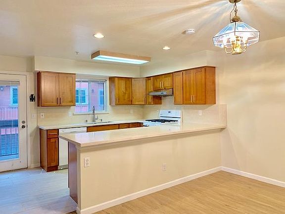 Modern 3 bedroom, 2.5 bath townhouse style condo located in the best front unit of development. Bright and sunny with a wonderful floor plan. Living room with fabulous high ceilings, fireplace and sliding door to a cozy patio. Upgraded kitchen with quartz countertop, new appliances transition smoothly to dining room with charming balcony. Master suite with walk-in closet. Bedroom 1 and 2 with sliding door closets. Central heat and air conditioning, new hardwood floors, new carpet, new paint, attached 2 car garage with extra storage, washer and dryer in unit, 1 guest parking, off street parking. Commuter's dream with easy access to 84, 880, BART and train. Close proximity to major tech companies (Facebook, Google and Tesla shuttle stops), NewPark Mall, Whole Foods, Costco, local parks and trails. Walking distance to all 3 top rated schools. No smoking. Small dog 20 lbs and under ok. Pet deposit is required One year Lease. Landlord pays for garbage and water