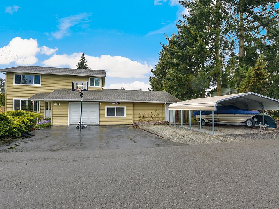 Charming home, quiet block! Main floor features living room in entry, open family room w/ brick FP, dining area w/ hardwood floors. Updated kitchen has granite counters & SS appliances. Bonus area w/ bath & kitchen as additional living space. Master features luxurious walk-in bath & closet/sitting area. 2 more beds, full bath & ample storage also on upper level. Lots of natural light throughout. Sliding doors to covered patio & large yard. Garden space, large shed, & plenty of parking for cars/RV.