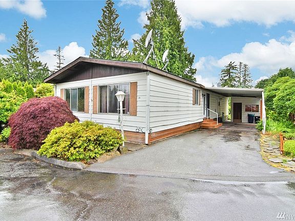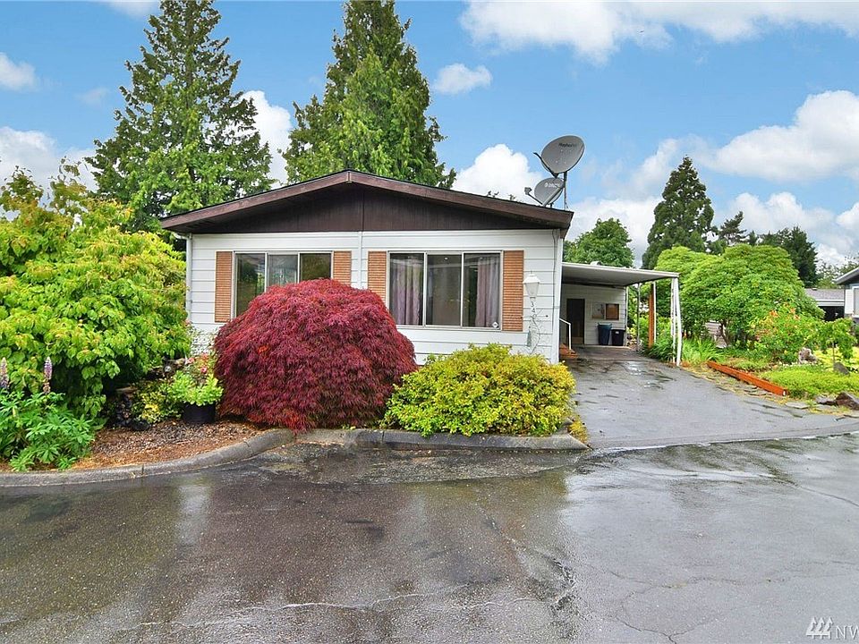 Fantastic opportunity for affordable living in the friendly 55+ Lynnwood Heights Park. This bright and open floor plan has 3 bedrooms, 2 full baths, 1,440 sf. Spacious living room opens to formal dining area complete with built-in hutch. Roomy kitchen with extensive cabinetry for storage, and stainless-steel refrigerator; opens to cozy family room for relaxing evenings at home or entertaining. Primary bedroom includes ¾ en-suite bath. Additional bedrooms could double as a crafting room, an office, or an exercise room. Large deck, ideal for barbecuing, overlooks adorable cottage garden patio and hot tub. Two lg sheds for extra storage and gardening tools. Convenient to freeways, shopping, restaurants, Alderwood Mall, Boeing, medical & bus.