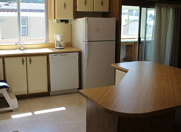 Beautifully maintained Double wide in 55+Park.Huge open floor plan with lots of sunshine.Nice open kitchen with island, lots of cupboards, extra large pantry, and all the appliances stay, including washer & dryer. Big living room and dining room with built in china cabinet. Family room off kitchen with sliders to nice summer deck. Large 12x15 master bedroom. Bath off both bedrooms. 8x19 extra finished room for workshop, hobby room, plants, canning room or ? 5yr old roof & much more.