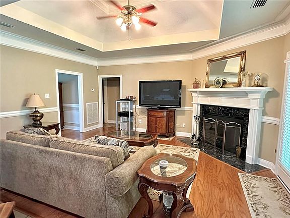 This charming four-bedroom, two-bath brick home sits on nearly 3 acres of beautifully landscaped property. Once inside you'll find hardwood flooring, crown molding, double trey ceilings and a cozy fireplace in the living room. The spacious layout includes a separate dining room with a specialty ceiling and breakfast area. The kitchen features new cabinets, new granite countertops, a walk-in pantry, an eat-at bar and a new stovetop. The master bath offers a relaxing retreat with a separate jacuzzi tub, shower, and double vanity. Upstairs, the large 21 x22 bonus room could easily serve as a fourth bedroom, game room or office. Other amenities include a double garage, workshop and new roof in 2019. The property is adorned with mature trees and provides shade and beauty throughout the year.
