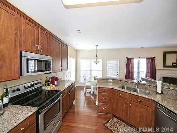 4 BR PLUS bonus in Waterstone swim community just minutes from I-77, downtown Charlotte! Rocking chair front porch, large fenced backyard on cul-de-sac, walk to pool. Hardwoods and 9-foot ceilings on 1st floor, formal LR w/French doors could be office/den, beautiful DR, great room with gas FP, cathedral ceiling, upgraded lighting, garden tub, big closets, and more! HVAC, roof less than 3 yrs old.