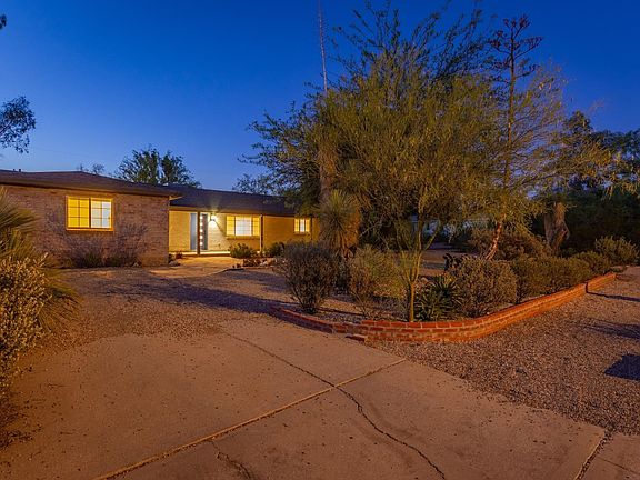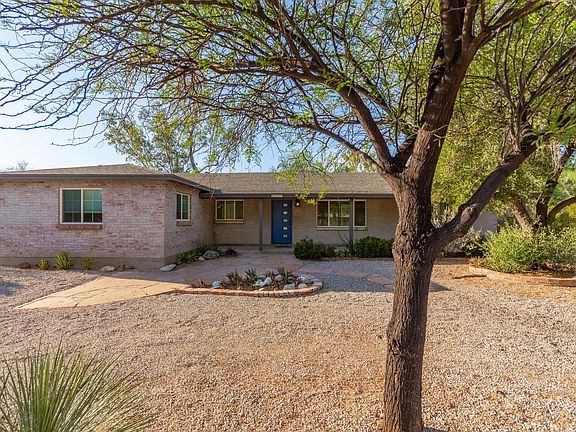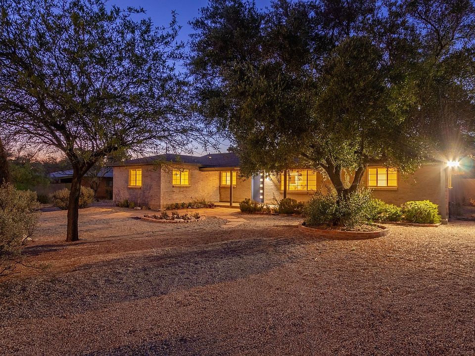 Step into perfection! Outstanding remodeled home featuring a mid century modern front door, modern concrete floors throughout, recessed lighting, soothing new palette, window blinds, & all new plumbing, electric, HVAC, & roof. Stunning new kitchen w/pendant lighting, breakfast bar, quartz counters, SS appliances, under-mount sink, under cabinet lighting, & plethora of white cabinetry w/stylish hardware. Patio access from family room. Perfect home for entertaining. Unique barn door entry into laundry area, upscale baths w/designer vanities, tile, fixtures, mirrors, & quartz counters. Generous sized bedrooms, ample closets, & dual pane windows. Enjoy the backyard covered pavered patio, desert landscape, patio for dining, & shade trees. This sensational home is the envy of the neighborhood!