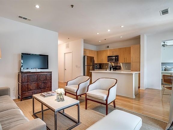 Personal home of interior designer in the heart of Oak Lawn. This contemporary condo comes with all of the extras expected from a designer, including Calacatta marble island and countertops, SS appliances and maple cabinets in kitchen. Decorative lighting and custom window treatments throughout. Bathroom includes walk-in shower and bathtub, dual sinks and large walk-in closet with built-ins. A secured lobby entrance with elevator takes you to the 2 floor. The open floor plan is great for entertaining and flooded with natural light from the many windows which provide treetop views. This coveted location is just blocks away from parks, retail and restaurants. A must see!