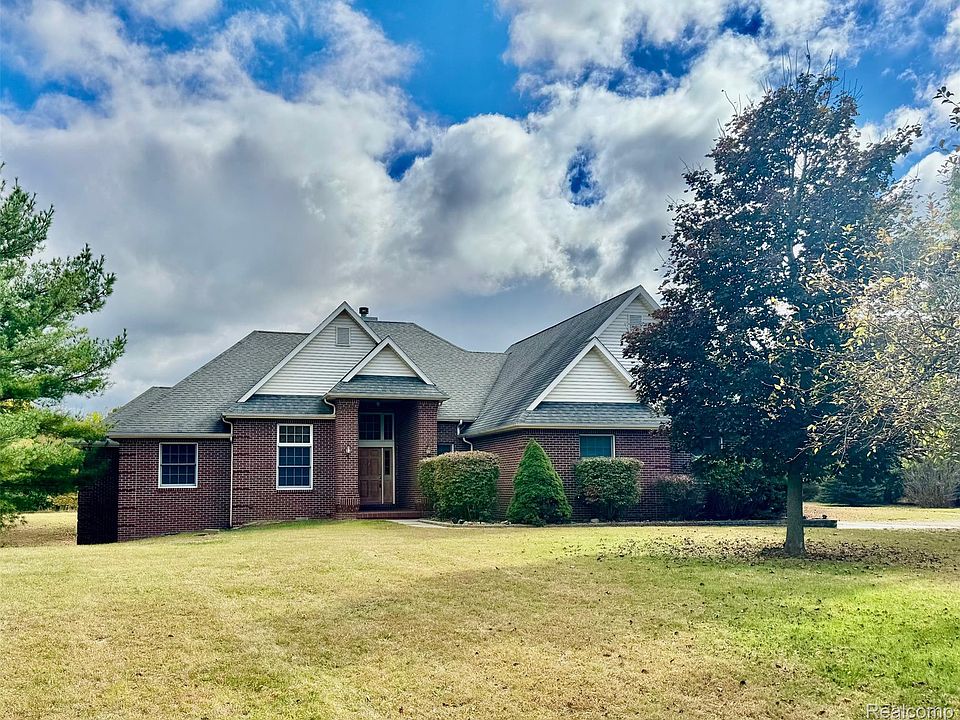 Nice ranch home in Dryden Township, 12+ acres with pole barn, brick construction, three bedroom, three full bath with hardwood main living areas and carpeting in bedrooms, tile in baths. Full unfinished walkout with a completed full bath. Generous kitchen with granite island and counters, breakfast dining with bay door wall to deck. Formal dining, living room with vaulted ceiling, doorwall to deck and stone fireplace. First floor laundry and three car garage.