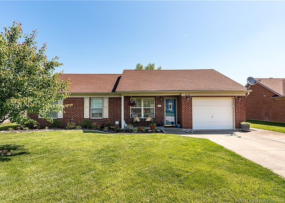 Want a beautiful view? Check out this adorable house with a newly fenced in yard and view of the lake. Open floor plan with new lvp flooring, light fixtures, paint and more. Nice space for entertaining in the eat in kitchen. Three good size bedrooms and two bathrooms all on one level with attached garage. Located in desirable Sellersburg close to everything. Come check it out and enjoy the view! Square footage, taxes, and school systems are to be verified by the buyer(s) or Buyer's Agent if critical to the buyer(s).